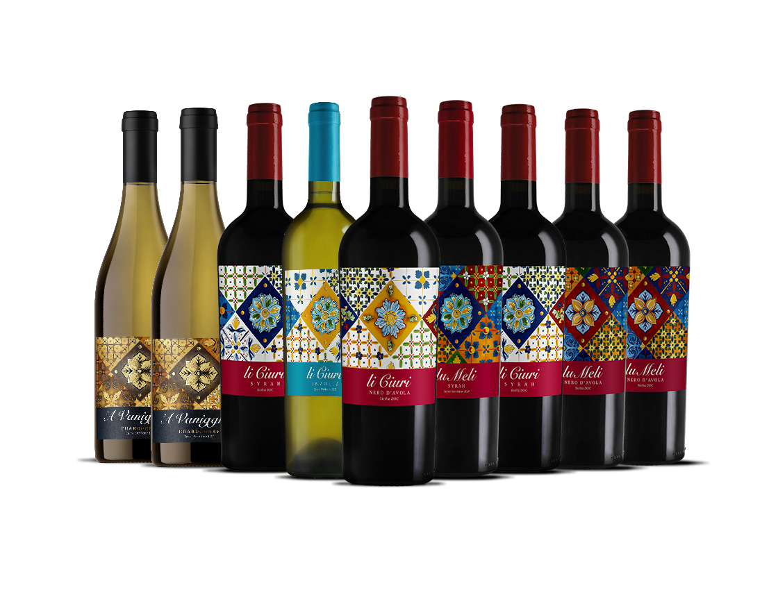 La Collezione Li Ciuri è un vivace omaggio all'arte vinicola siciliana, dove uve autoctone e internazionali prosperano sotto il generoso sole dell'isola. Questo assortimento da 9 bottiglie presenta vitigni espressivi come Nero d’Avola, Syrah, Grillo e Chardonnay – ciascuno riflettendo il calore e la tradizione del territorio con un tocco moderno.
