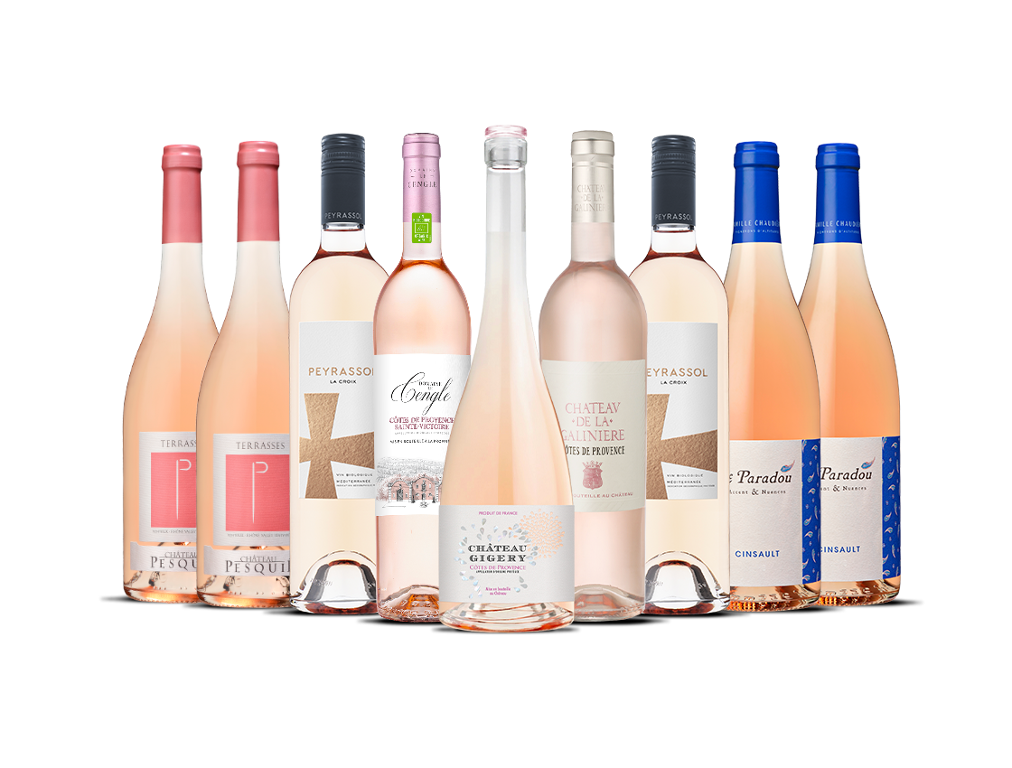 Diese 9-Flaschen-Box ist eine Hommage an den raffinierten Charme des südfranzösischen Rosés, insbesondere der weltberühmten blassrosafarbenen Weine der Provence. Diese Weine sind der Inbegriff von erfrischender, trockener Frische — mit zarten Aromen, sanften Fruchtnoten und einer leichten Eleganz, die den Geist des Sommers einfängt.