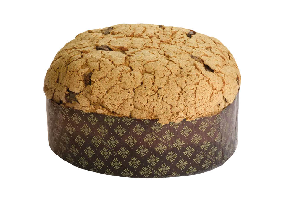 La ricetta prevede l’uso di lievito madre naturale e un’attenta lavorazione che garantisce una lunga e naturale lievitazione. L’impasto è arricchito con cioccolato fondente e cioccolato al latte, mentre la glassatura è realizzata con zucchero, albume d’uovo pastorizzato, farina di nocciole e farina di riso. L’aromatizzazione è completata da estratti naturali, tra cui vaniglia del Madagascar, per un profilo aromatico ricco e avvolgente.