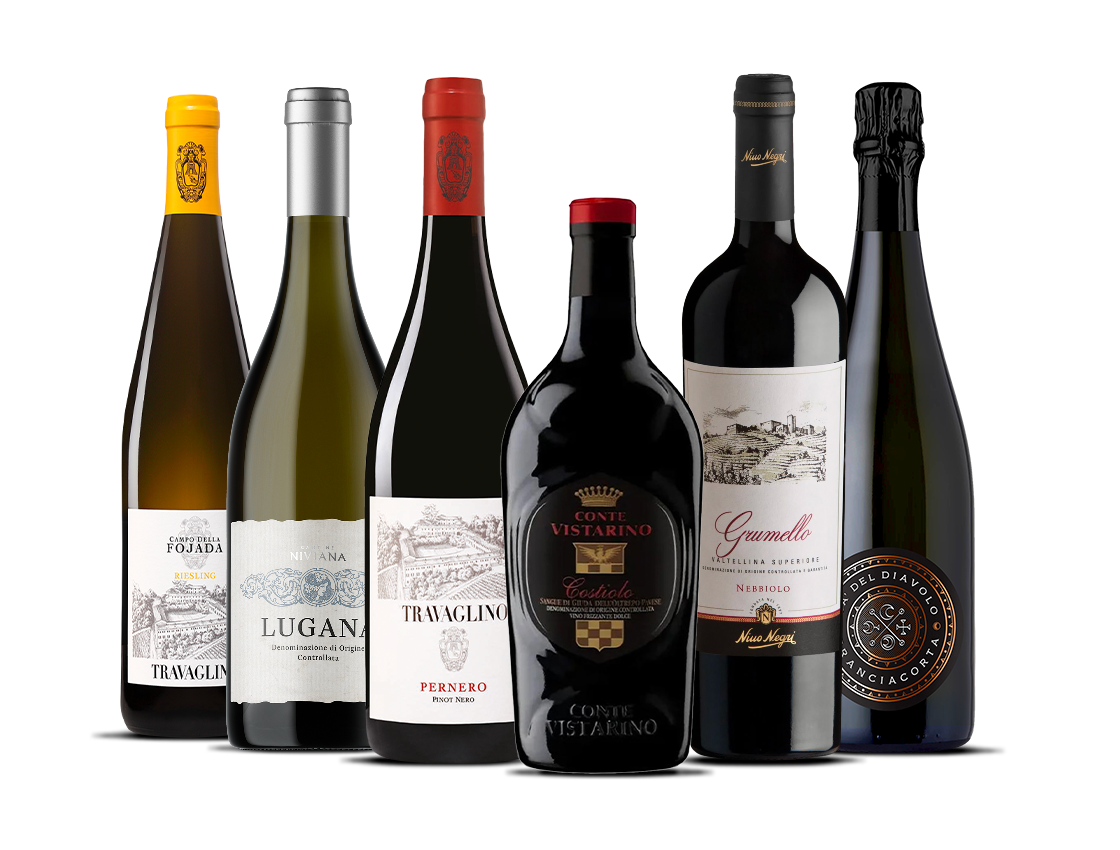 This box showcases the diverse and refined wines of one of northern Italy’s most dynamic regions. This six-bottle selection includes three reds, two whites, and one sparkling wine, reflecting Lombardy’s rich winemaking heritage and varied landscapes—from alpine slopes to lakeside vineyards.