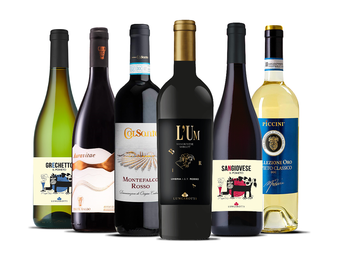 Umbria is known for native grapes like Sangiovese, Grechetto, and the robust Sagrantino, which give its wines a unique identity—earthy, structured, and full of character. Whether you're new to Umbria or rediscovering its charm, this box is your perfect introduction.