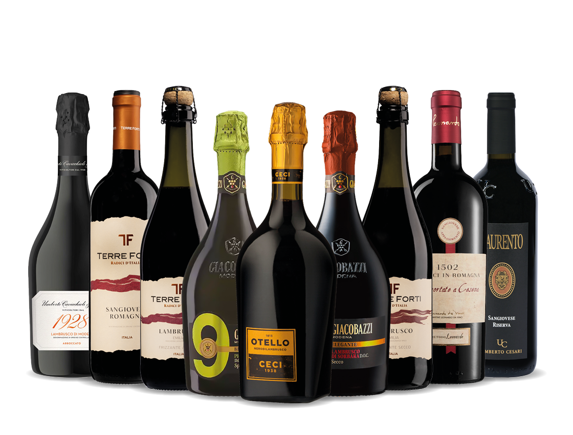 The undisputed star is Lambrusco in all its nuances: sparkling, dry, sweet, or spumante, perfectly pairing with the most iconic festive dishes from Emilia, such as tortellini in broth and boiled meats. There are also more complex versions, like Otello Nero di Lambrusco or Sorbara Brut, elegant and surprising. Alongside, Sangiovese di Romagna becomes intense and enveloping in both its young and Riserva versions, up to the Appassimento that provides soft and spicy notes. Pignoletto, fresh and lively, brings a festive and refined touch, ideal for aperitifs or the midnight toast.