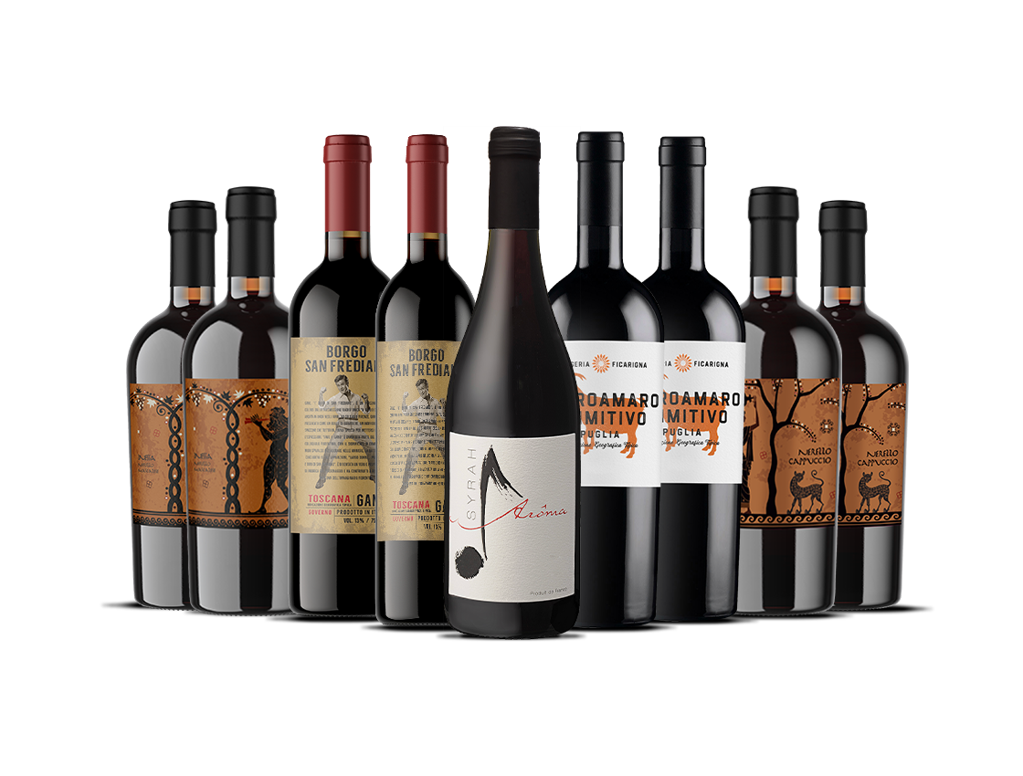 Esta caja presenta nueve vinos tintos intensamente atrevidos y afrutados, especialmente seleccionados para brillar con platos de temporada. Desde jugosos a especiados y suaves, cada botella está llena de sabor, madurez y calidez - ¡aquí no hay livianos!